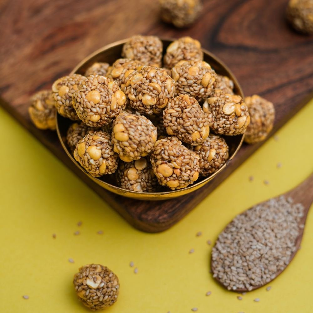 Discover the wholesome delight of White Sesame Chikki, a timeless Indian treat crafted from premium white sesame seeds and natural jaggery. Each bite offers a perfect balance of nutty aroma, gentle sweetness, and irresistible crunch—a simple yet nourishing indulgence loved across generations.